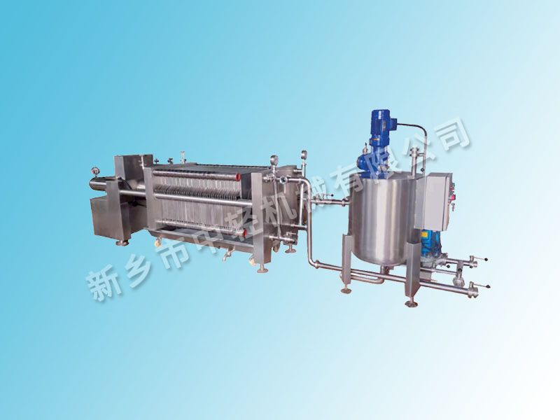 其過濾原理是,待濾液通過泵的作用,輸送到由過濾板、過濾框、密封件及端板連接形成的進口通道內,然后流入端板和過濾框內;由于過濾前后具有壓力差,待濾液能穿過附著在支撐紙板上硅藻土層流入過濾板內,在硅藻土的截留、篩分和吸附作用下,將濾液中的菌體或固體顆粒等雜質分離出來,澄清后的液體由過濾板另一側的出口通道流出,實現液體的澄清過濾。